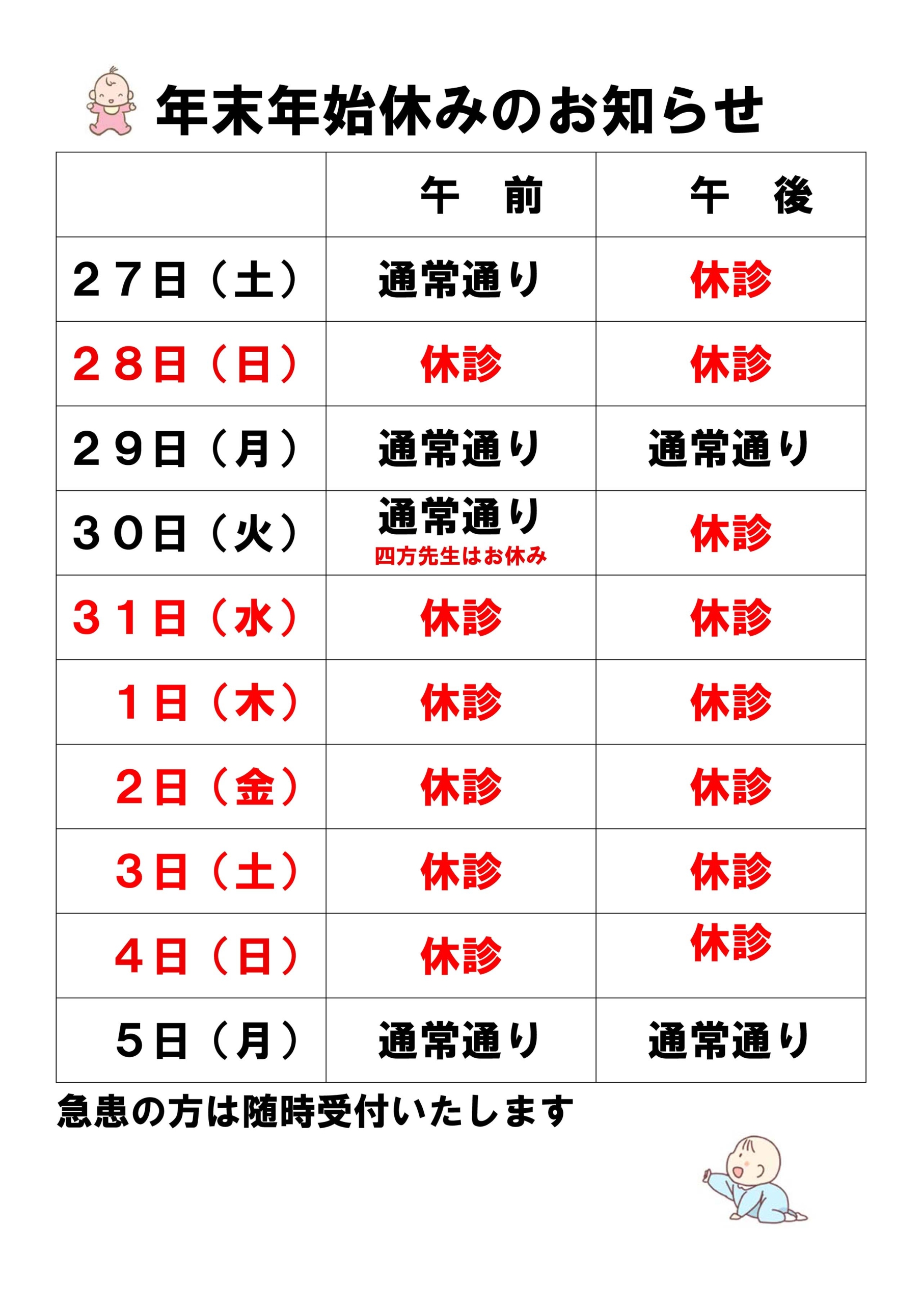 年末年始のお休みのお知らせ